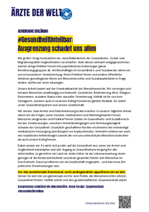 Gemeinsame Erklärung: #GesundheitUnteilbar: Ausgrenzung schadet uns allen